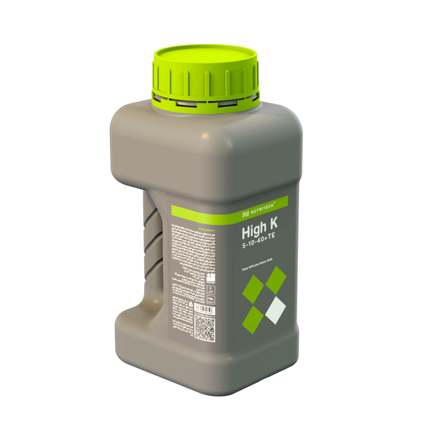 High K 5-10-40 نوتری تک کودی سرشار از پتاسیم و حاوی نیتروژن، فسفر، اسید آمینه، ماده آلی و عناصر ریز مغذی کلات شده با اسید آمینه گلایسین است. این کود به شکل سوسپانسیون است و برای مصرف محلول پاشی تمامی گیاهان در دوره رشد زایشی و رشد میوه قابل استفاده است. مصرف این کود باعث می شود مواردی مانند رنگ، طعم و بازارپسندی محصول افزایش یابد و همچنین باعث افزایش شاخص هایی مانند بریکس، سایز و… برای میوه ها خواهد شد.